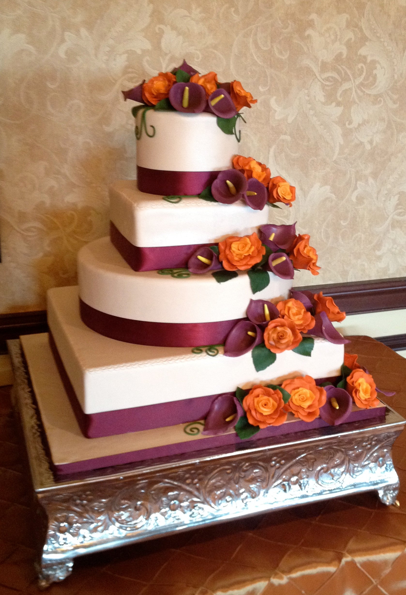 - Wedding silver cake stand 18" by 18" square top surface with 5.25" height